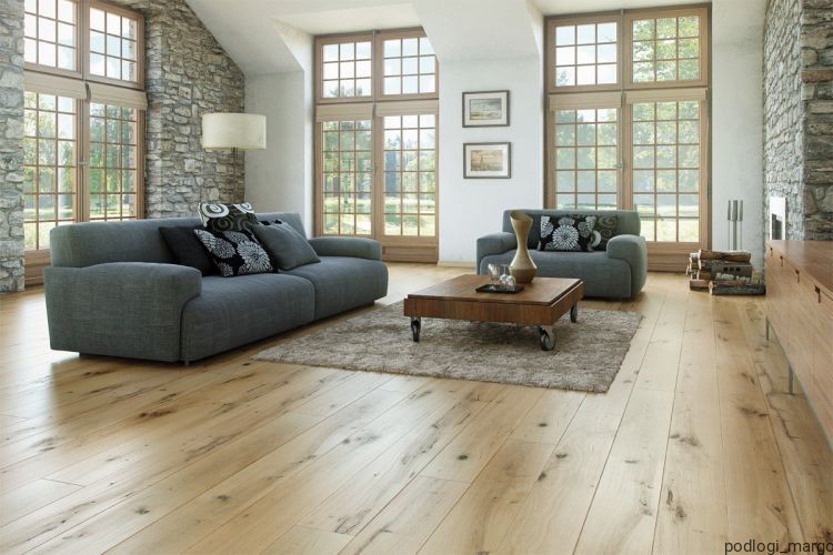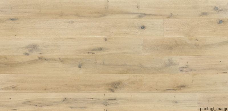 Idealna do przestronnych, dobrze doświetlonych domów pod miastem. Ta tradycyjna i całkowicie naturalna podłoga drewniana zachwyca nietuzinkowym delikatnie kremowym odcieniem.