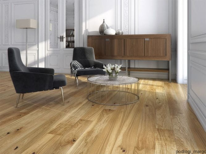 Podłoga dębowa o klasycznym wyglądzie, spotykanym w stylowych wnętrzach mieszczańskich. Idealna do klimatycznych wiekowych kamienic, w których będzie wyglądała niezwykle naturalnie.