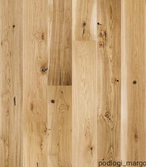 Szeroka, jednopasmowa deska dębowa pokryta matowym olejem naturalnym. Urozmaicony rysunek słojów ze średnimi sękami i naturalnymi przebarwieniami. Struktura drewna podkreślona szczotkowaniem. Dwustronne fazowanie optycznie wydłuża deskę i podkreśla jej naturalny wygląd.