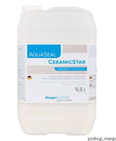 Aqua-Seal CeramicStar jest dwuskładnikowym lakierem wodnym klasy premium na bazie poliuretanu, cechującym się dużą odpornością, uniwersalnym zastosowaniem oraz niższą lepkością. Produkt ten jest łatwy w pracy, a zawarte cząsteczki ceramiczne istotnie wpływają na wybitną wytrzymałość. Polecany szczególnie na szybkie budowy ze względu na możliwość obciążania już po 24 godz. CeramicStar jest doskonałym rozwiązaniem przy renowacji starych podłóg np. odcinając pozostałości soli w drewnie daje lepszy efekt w porównaniu z innymi lakierami.