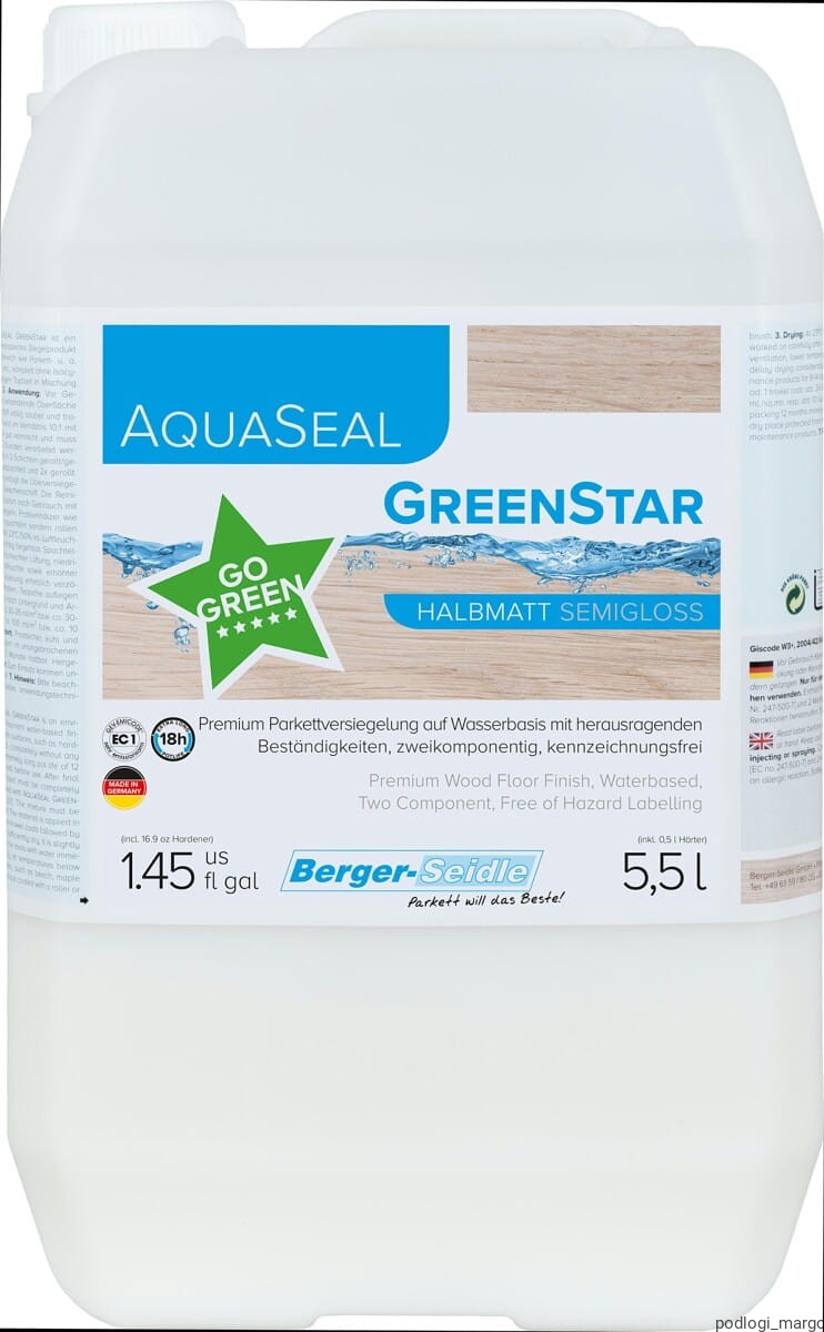 Aqua-Seal GreenStar jest dwuskładnikowym lakierem wodnym klasy premium na bazie poliuretanu o wybitnej odporności na ścieranie oraz uniwersalnym zastosowaniu. Ze względu na swoje specjalne właściwości oraz elastyczność nadaje się do lakierowania surowego korka i osiąga najlepsze wartości podczas testów chemicznych. Oferuje natomiast bardzo długi czas pracy – przynajmniej 12 godz.