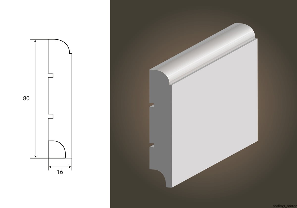 Listwy wykonane z MDF tj. płyty drewnopochodnej o średniej gęstości.